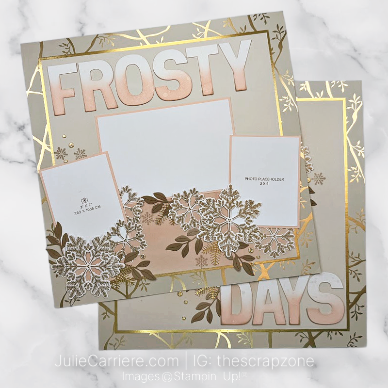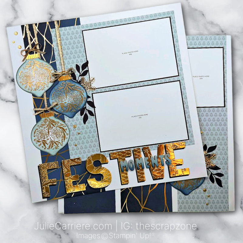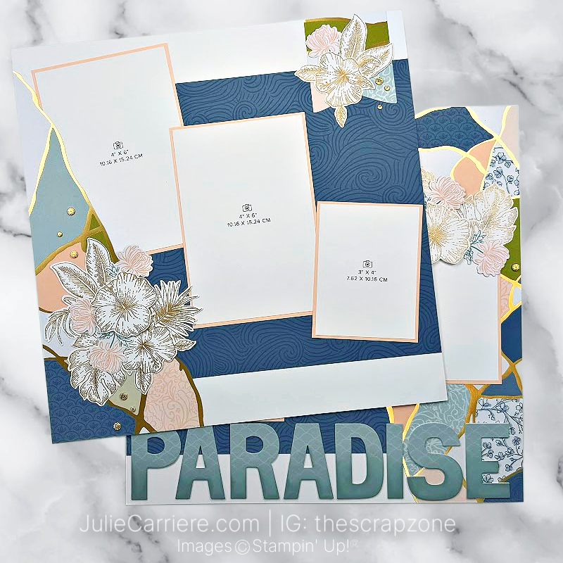 Cutting diagrams, supply list, photos, and tips to help you complete three double-page layouts. This guide can be used with any products you like. The samples shown have been made with the Stampin’ Up! Kintsigu DSP.
